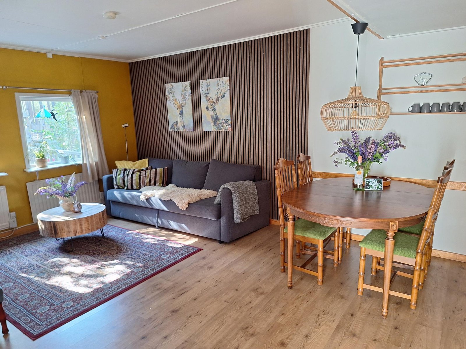 Viol (Viool) 2 is een warme, ruime en gezellige Stuga met ruime douche. Twee slaapkamers waavan 1 met een goed 2 persoons boxspring en een slaapkamer met een stapelbed en een verstelbaar 1 persoonsbed (hoog/laag bed).